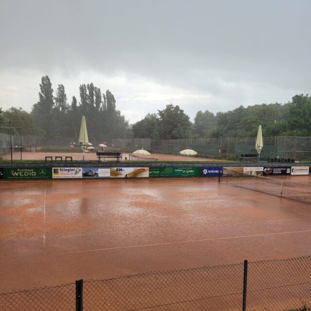 Regen besonders am Freitag: Einige Spiele fanden in unsere Halle statt, die anderen waren am Samstag nachzuholen. Ein Wolkenbruch am frühen Samstag bremste den Turnierablauf nochmals.